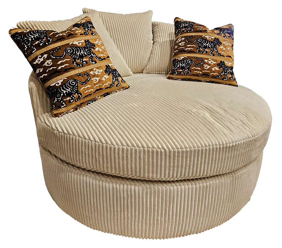Shown here in Memphis Ivory body fabric with Memphis Ivory, Tigress Umber & Leonidas 01110023 pillows